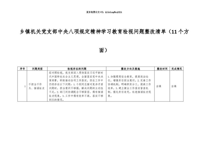 / 2025主题教育│17两个清单:乡镇机关党支部中央八项规定精神学习教育检视问题整改清单(11个方面)