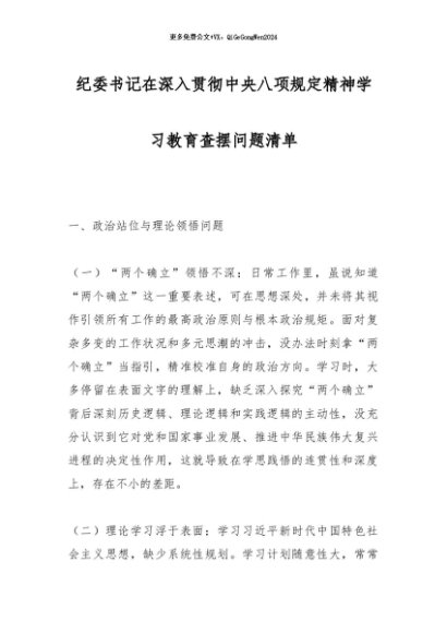 / 2025主题教育│17两个清单:纪委书记在深入贯彻中央八项规定精神学习教育查摆问题清单