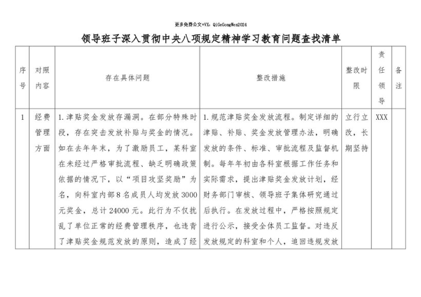 / 2025主题教育│17两个清单:领导班子深入贯彻中央八项规定精神学习教育问题查找清单