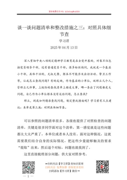 / 2025主题教育│16写作指引:03谈一谈问题清单和整改措施之三:对照具体细节查