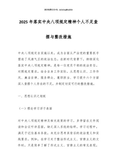 2025主题教育│17两个清单:2025 年落实中央八项规定精神个人不足查摆与整改措施