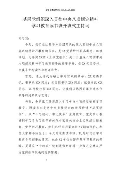 / 2025主题教育│14作者原创:XX单位八项规定学习教育读书班开班式主持词