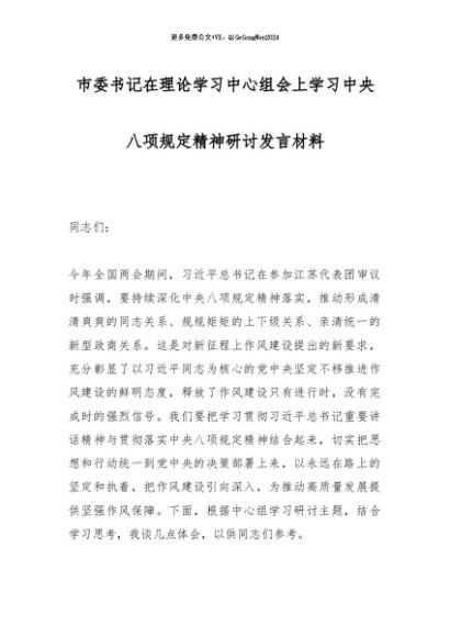 / 2025主题教育│09中心组:市委书记在理论学习中心组会上学习中央八项规定精神研讨发言材料