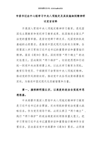 / 2025主题教育│09中心组:市委书记在中心组学习中央八项规定及其实施细则精神研讨发言材料