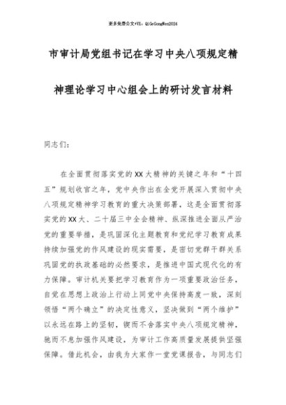 / 2025主题教育│09中心组:市审计局党组书记在学习中央八项规定精神理论学习中心组会上的研讨发言材料