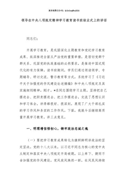 2025主题教育│07读书班:领导在中央八项规定精神学习教育读书班结业式上的讲话