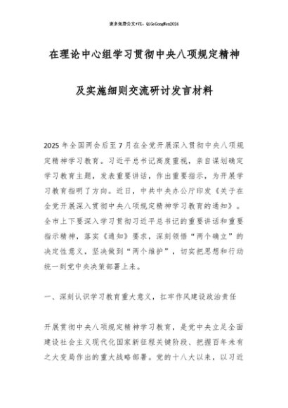 / 2025主题教育│09中心组:在理论中心组学习贯彻中央八项规定精神及实施细则交流研讨发言材料