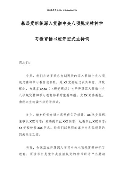 / 2025主题教育│07读书班:基层党组织深入贯彻中央八项规定精神学习教育读书班开班式主持词