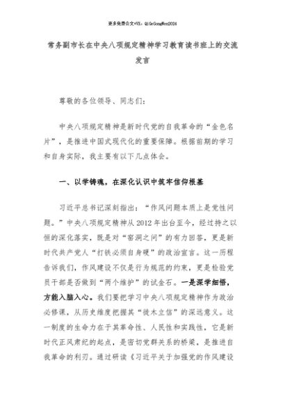/ 2025主题教育│07读书班:常务副市长在中央八项规定精神学习教育读书班上的交流发言