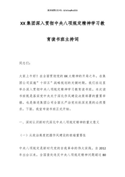 / 2025主题教育│07读书班:集团深入贯彻中央八项规定精神学习教育读书班主持词