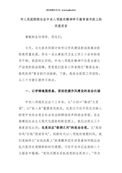 / 2025主题教育│07读书班:市人民医院院长在中央八项规定精神学习教育读书班上的交流发言