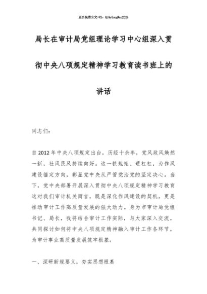/ 2025主题教育│07读书班:局长在审计局党组理论学习中心组深入贯彻中央八项规定精神学习教育读书班上的讲话