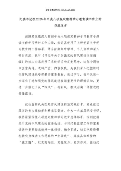 / 2025主题教育│07读书班:纪委书记在2025年中央八项规定精神学习教育读书班上的交流发言