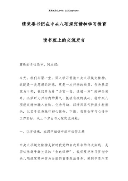 / 2025主题教育│07读书班:镇党委书记在中央八项规定精神学习教育读书班上的交流发言