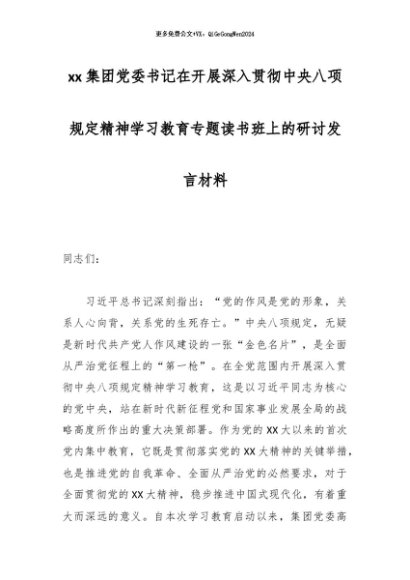 / 2025主题教育│07读书班:集团党委书记在开展深入贯彻中央八项规定精神学习教育专题读书班上的研讨发言材料