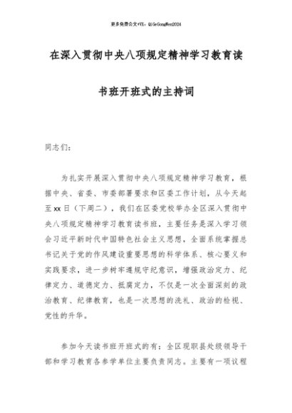 / 2025主题教育│07读书班:在深入贯彻中央八项规定精神学习教育读书班开班式的主持词