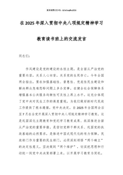 / 2025主题教育│07读书班:在2025年深入贯彻中央八项规定精神学习教育读书班上的交流发言