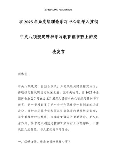 / 2025主题教育│07读书班:在2025年局党组理论学习中心组深入贯彻中央八项规定精神学习教育读书班上的交流发言