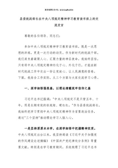 / 2025主题教育│07读书班:县委统战部长在中央八项规定精神学习教育读书班上的交流发言