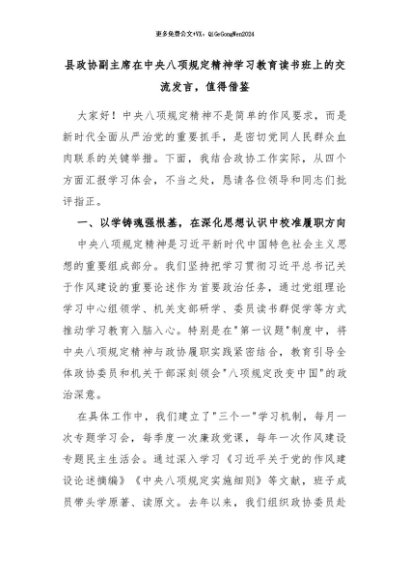 / 2025主题教育│07读书班:县政协副主席在中央八项规定精神学习教育读书班上的交流发言,值得借鉴
