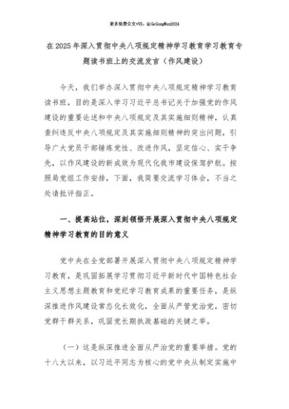 / 2025主题教育│07读书班:在2025年深入贯彻中央八项规定精神学习教育学习教育专题读书班上的交流发言(作风建设)