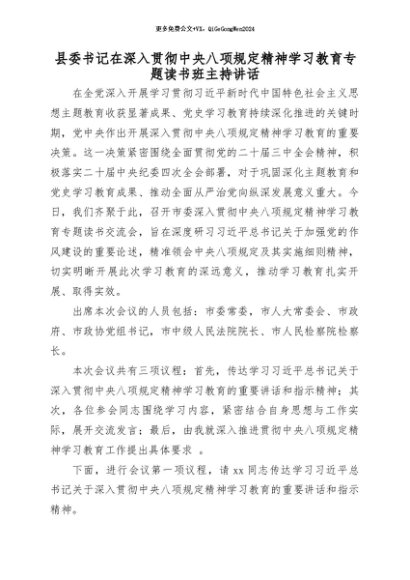 / 2025主题教育│07读书班:县委书记在深入贯彻中央八项规定精神学习教育专题读书班主持讲话