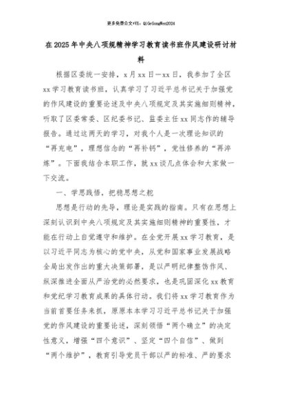 / 2025主题教育│07读书班:在2025年中央八项规精神学习教育读书班作风建设研讨材料