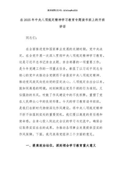 2025主题教育│07读书班:在2025年中央八项规定精神学习教育专题读书班上的开班讲话