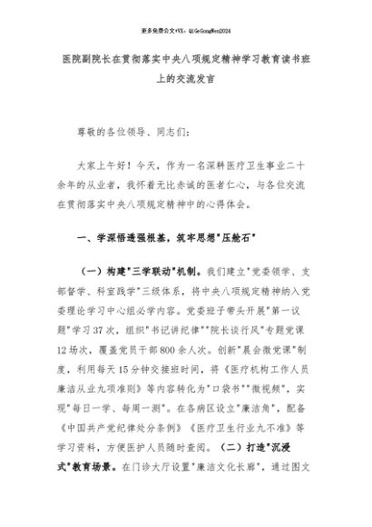 / 2025主题教育│07读书班:医院副院长在贯彻落实中央八项规定精神学习教育读书班上的交流发言