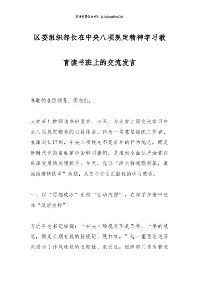 / 2025主题教育│07读书班:区委组织部长在中央八项规定精神学习教育读书班上的交流发言