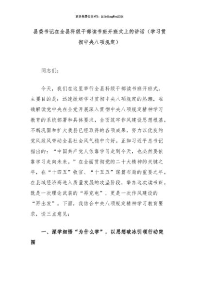 / 2025主题教育│07读书班:县委书记在全县科级干部读书班开班式上的讲话(学习贯彻中央八项规定)