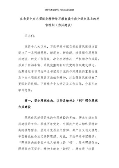/ 2025主题教育│07读书班:在市委中央八项规定精神学习教育读书班分组交流上的发言提纲(作风建设)
