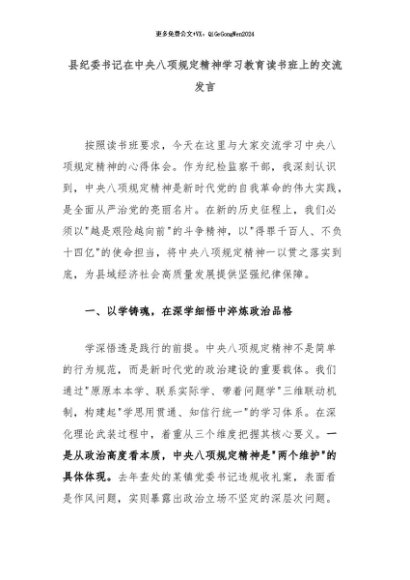 / 2025主题教育│07读书班:县纪委书记在中央八项规定精神学习教育读书班上的交流发言