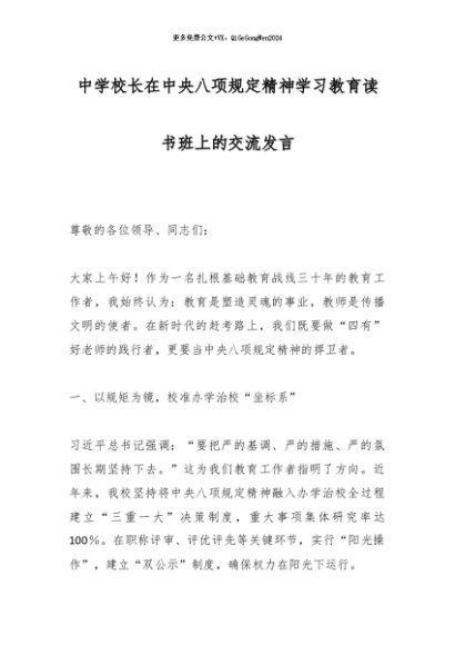 / 2025主题教育│07读书班:中学校长在中央八项规定精神学习教育读书班上的交流发言