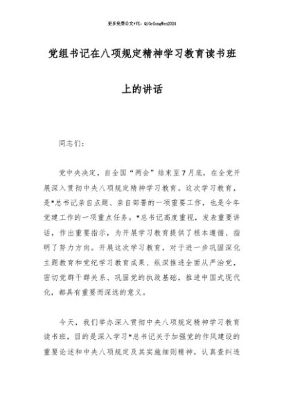 / 2025主题教育│07读书班:党组书记在八项规定精神学习教育读书班上的讲话