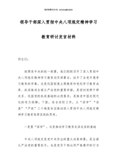 / 2025主题教育│05交流发言:领导干部深入贯彻中央八项规定精神学习教育研讨发言材料