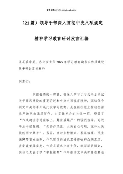 / 2025主题教育│05交流发言:领导干部深入贯彻中央八项规定精神学习教育研讨发言汇编(21篇)