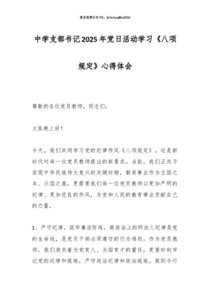 / 2025主题教育│06心得体会:中学支部书记2025年党日活动学习《八项规定》心得体会
