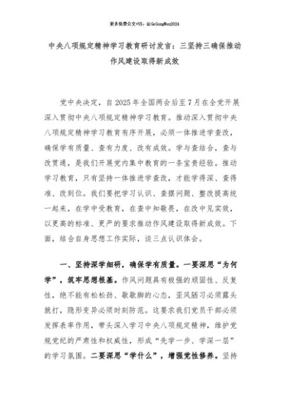 / 2025主题教育│05交流发言:三坚持三确保推动作风建设取得新成效