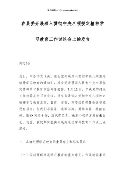 / 2025主题教育│05交流发言:在县委开展深入贯彻中央八项规定精神学习教育工作讨论会上的发言
