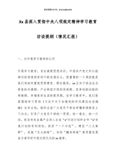 / 2025主题教育│05交流发言:Xx县深入贯彻中央八项规定精神学习教育访谈提纲(情况汇报)