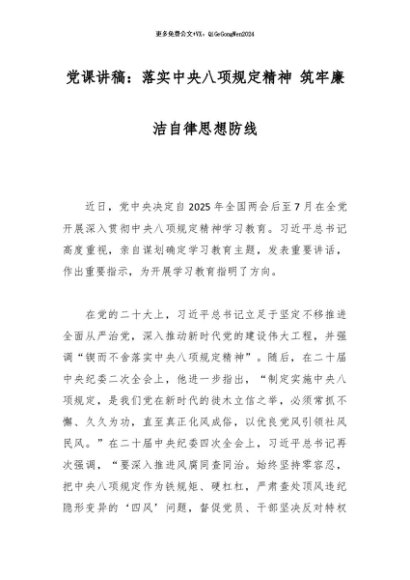 / 2025主题教育│04党课讲稿:落实中央八项规定精神 筑牢廉洁自律思想防线