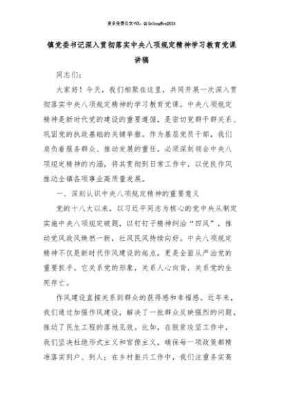 / 2025主题教育│04党课讲稿:镇党委书记深入贯彻落实中央八项规定精神学习教育党课讲稿