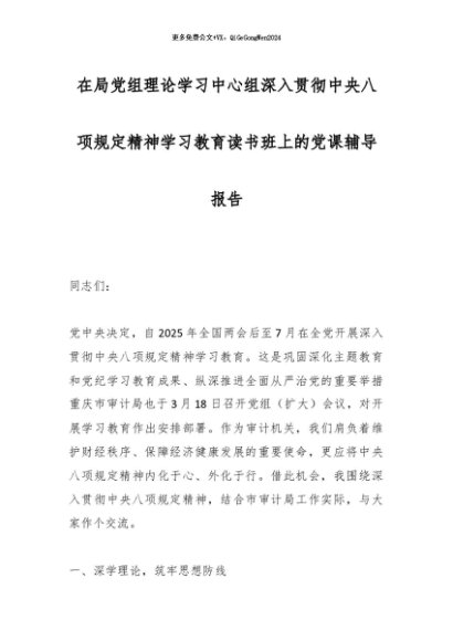 / 2025主题教育│04党课讲稿:在局党组理论学习中心组深入贯彻中央八项规定精神学习教育读书班上的党课辅导报告