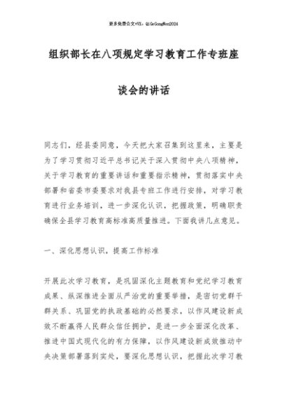 / 2025主题教育│03动员部署:组织部长在八项规定学习教育工作专班座谈会的讲话