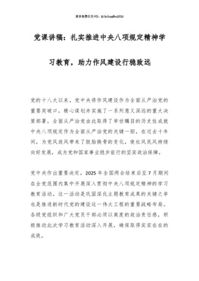 / 2025主题教育│04党课讲稿:扎实推进中央八项规定精神学习教育,助力作风建设行稳致远