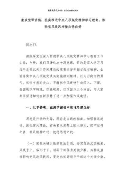 / 2025主题教育│04党课讲稿:扎实推进中央八项规定精神学习教育,推动党风政风持续向优向好
