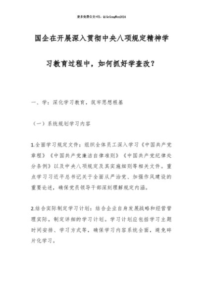 / 2025主题教育│04党课讲稿:国企在开展深入贯彻中央八项规定精神学习教育过程中,如何抓好学查改?