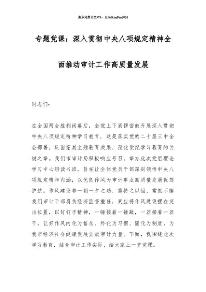 / 2025主题教育│04党课讲稿:深入贯彻中央八项规定精神全面推动审计工作高质量发展