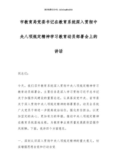 / 2025主题教育│03动员部署:市教育局党委书记在教育系统深入贯彻中央八项规定精神学习教育动员部署会上的讲话